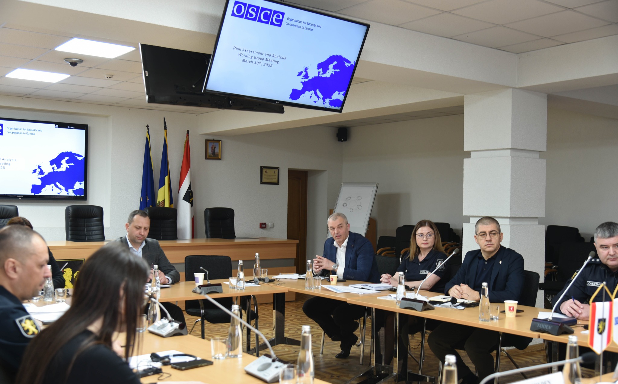 Representatives from the OSCE, Moldovan General Police Inspectorate (GPI) and the Moldovan General Inspectorate of Border Police (GIBP) at a meeting on risk identification, analysis and management, Chisinau, 14 March 2025.