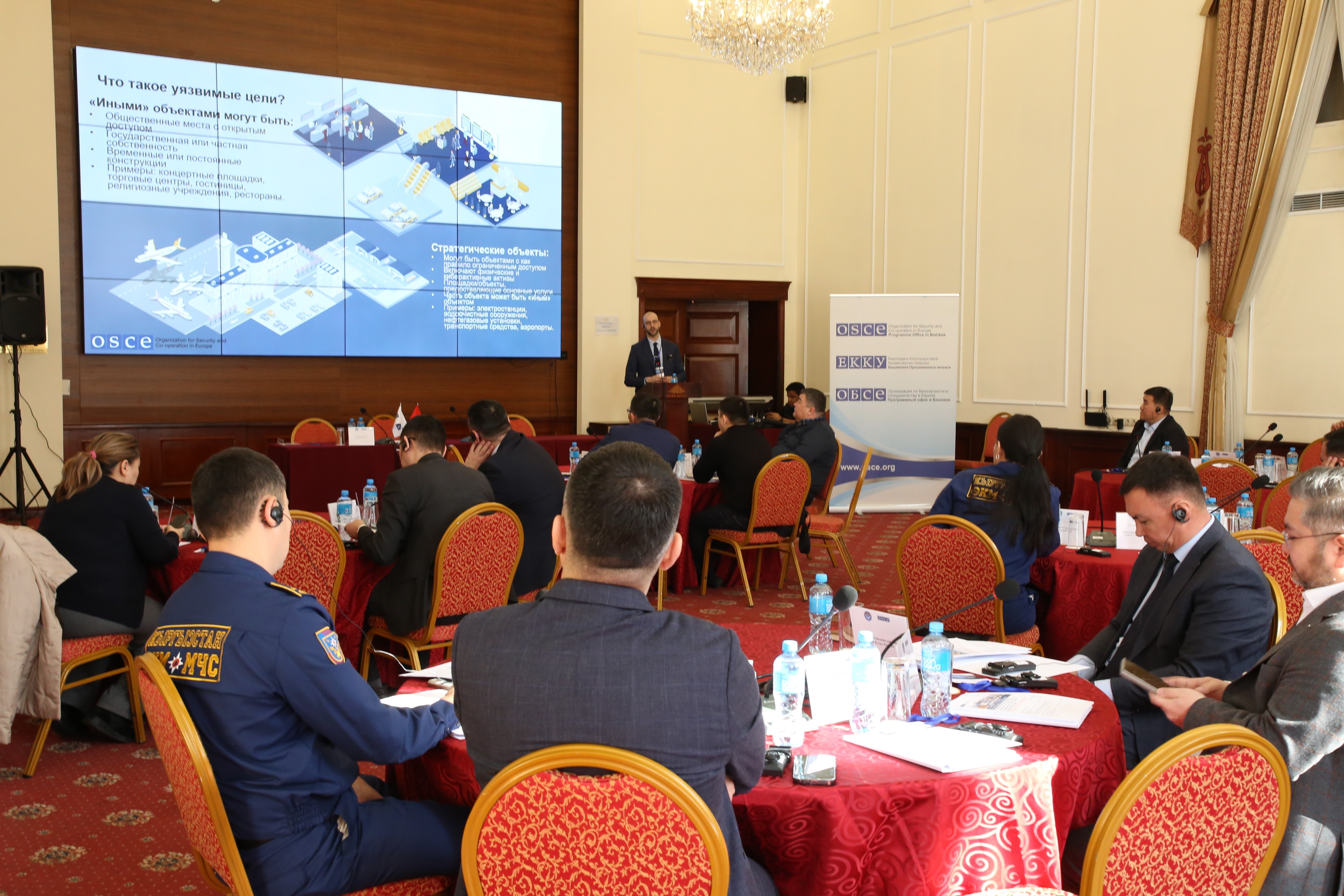 Participants in a workshop on protecting soft targets, such as public events, from terrorist attacks in Bishkek, 18 February 2024.